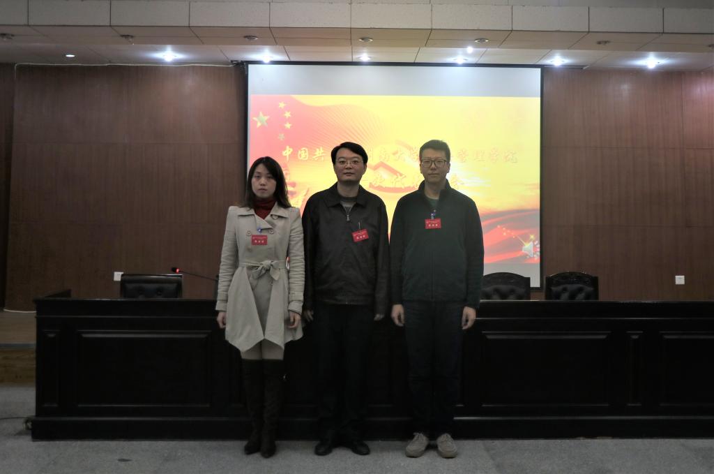 委员会和纪律检查委员会。大会应到代表39人,因事因病请假2人,实到37人。校党委常委、副校长汪卫斌同志到会祝贺并讲话,校纪委办公室主任李璀同志参加会议并宣读学校批复,公共管理学院院长李连友同志致开幕词,公共管理学院党委书记付蓉芬同志致闭幕词。大会还特邀学院老领导、民主党派代表、无党派人士代表以及学院群团组织代表等列席会议。会议由公共管理学院党委副书记杜倩博同志主持。
