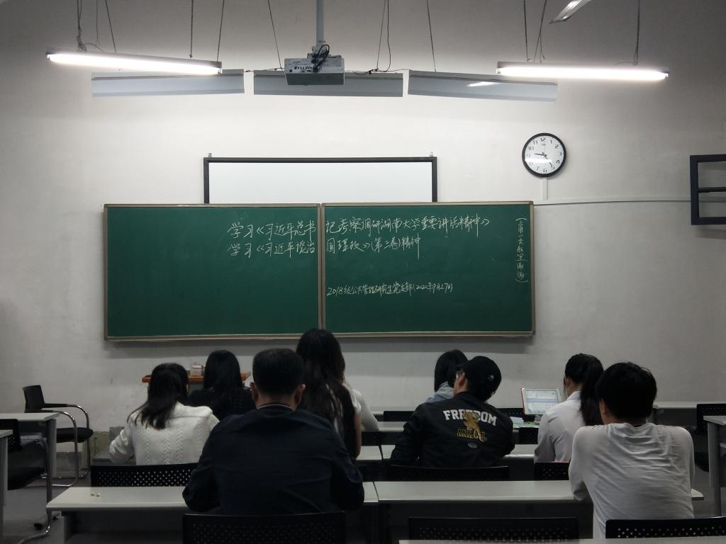 9月27日,2018级公共管理研究生党支部召开会议,组织学习《习近平总书记考察调研湖南大学重要讲话精神》,交流学习体会。会议由支部书记李贝贝主持,全体党员参会。