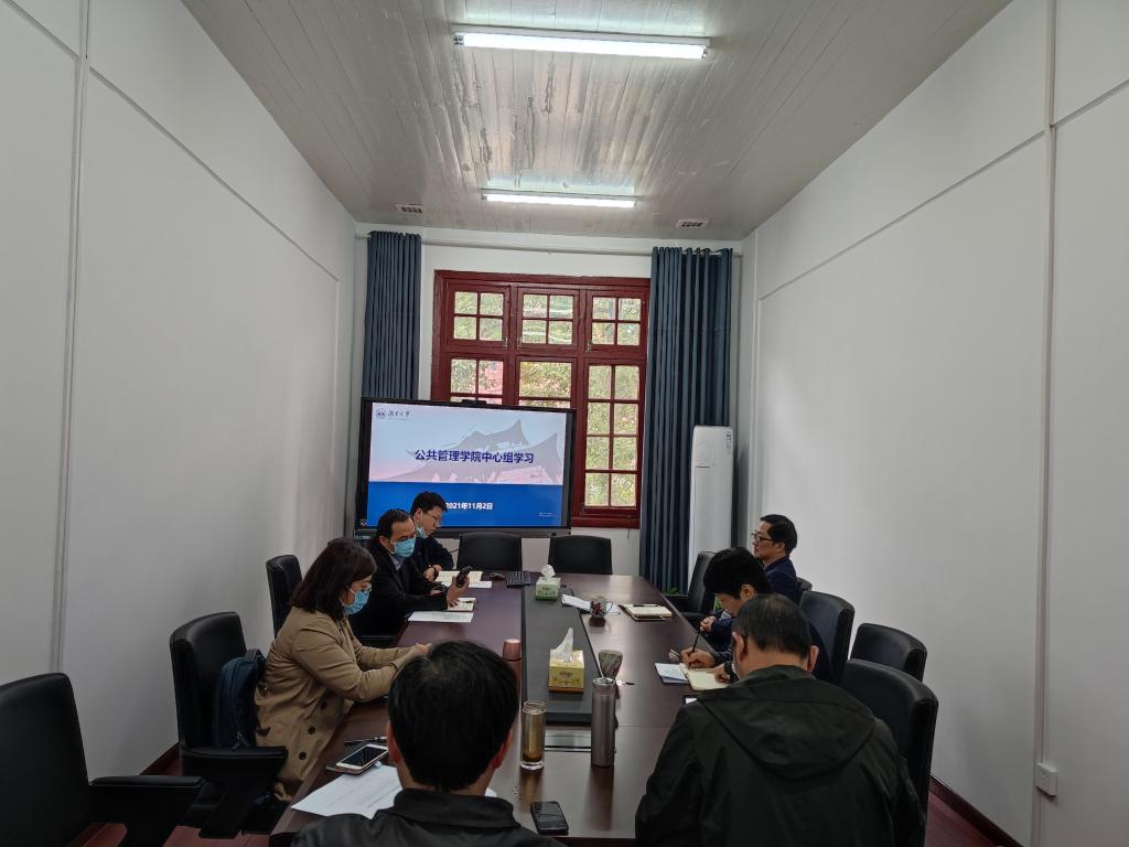 11月2日,公共管理学院党委理论学习中心组举行专题学习会,深入学习贯彻习近平总书记《扎实推动共同富裕》重要文章精神。院党委书记付蓉芬主持会议,院党委委员、副院长谭海波领学,中心组成员交流感悟体会。