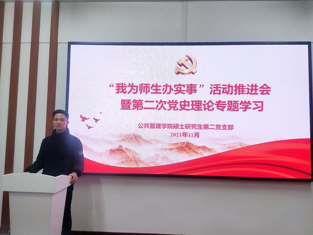 11月30日,公共管理学院硕士研究生第二党支部“我为师生办实事”活动推进会暨第二次党史理论专题学习在院楼221室召开。支部全体党员、入党积极分子参加。