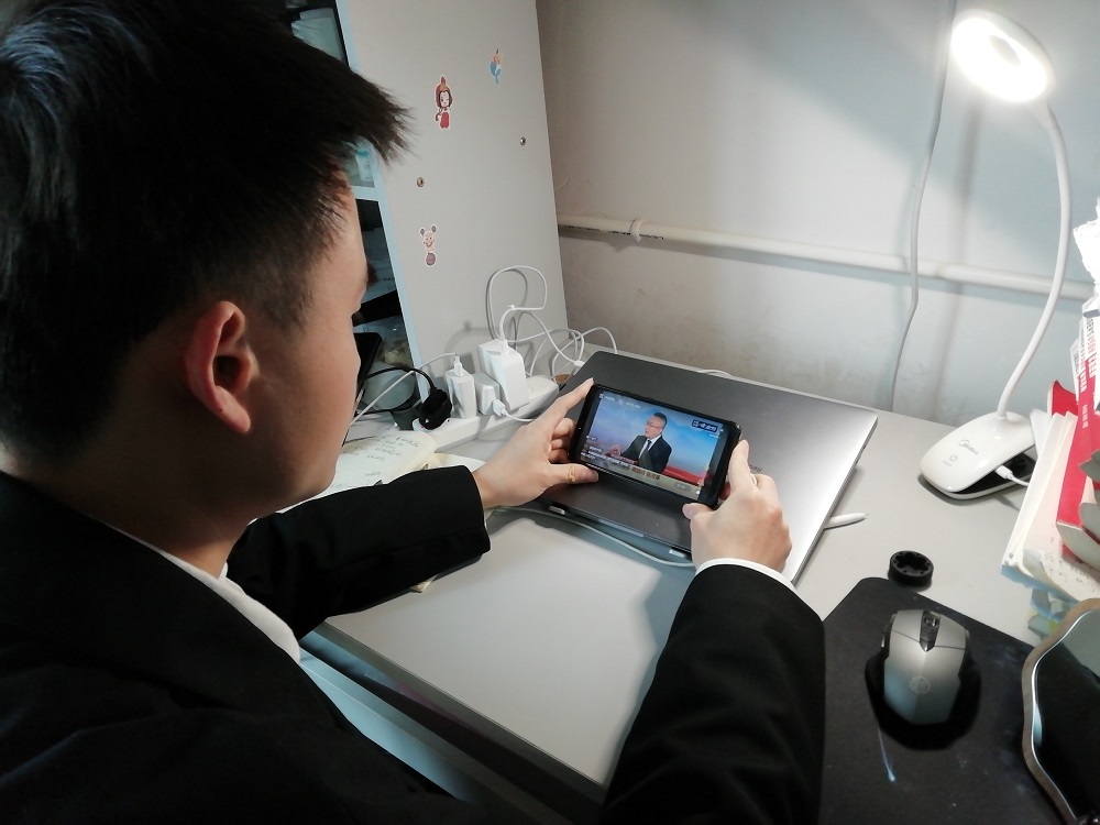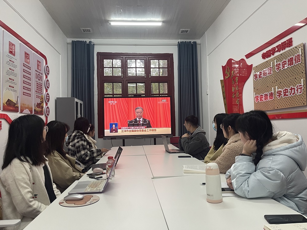 公共管理学院第一时间组织部分研究生于学院党员活动室集中观看全国“两会”开幕直播盛况,认真学习全国“两会”精神。其他研究生则通过电脑、手机等方式观看直播。