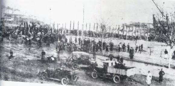 1938年初,徐特立回湖大作抗战讲演后在校门前留影