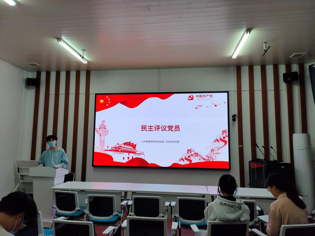 4月29日,公共管理学院本科生第二党支部于院楼221室召开组织生活会,进行民主评议党员。会议应到党员33名,实到党员24名,9名党员采取线上会议形式参会,支部书记夏仁辉主持本次会议。
