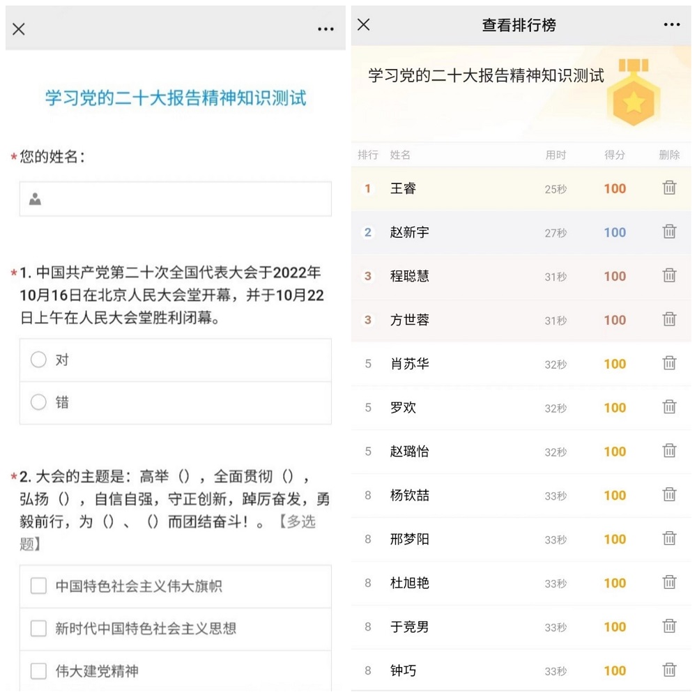 作为学习贯彻党的二十大精神系列活动之一,此次测试活动掀起了全院上下学习宣传贯彻党的二十大精神热潮。老师们纷纷表示,将以此次活动为契机,全面深刻领会和把握党的二十大精神的丰富内涵和精髓实质,真正做到学懂弄通做实,并结合教育教学工作落地见效,为推动学院高质量发展贡献力量。