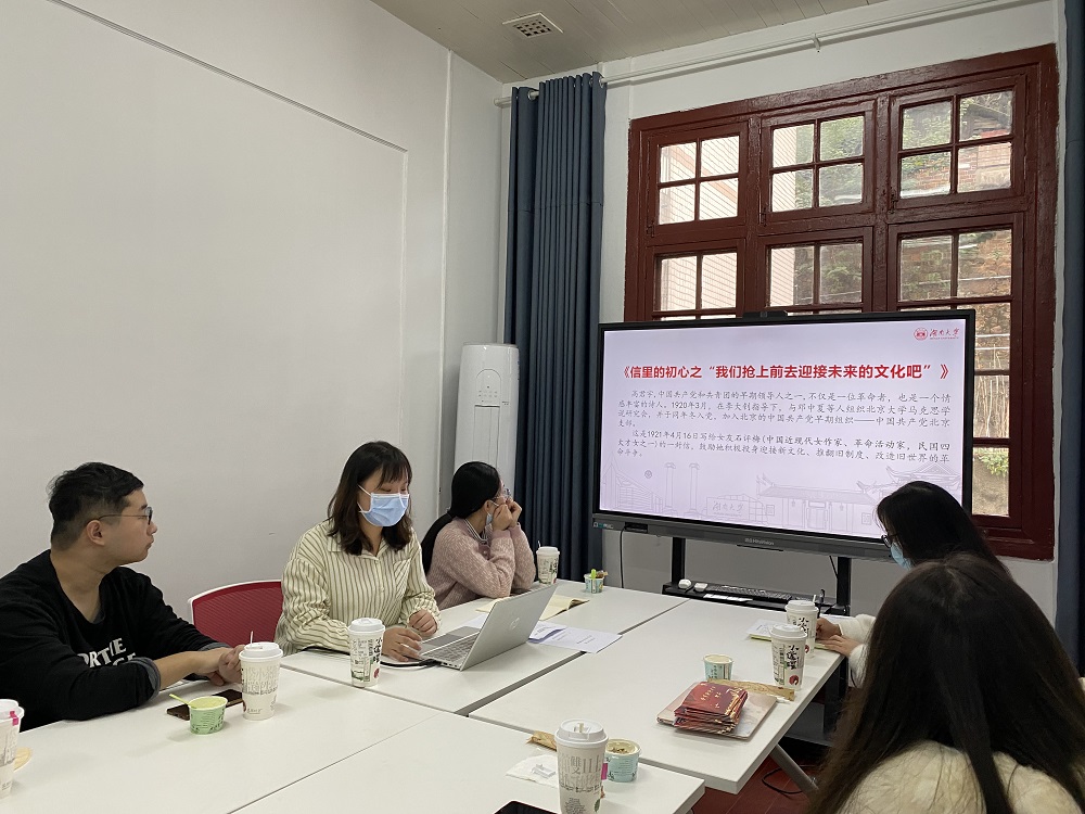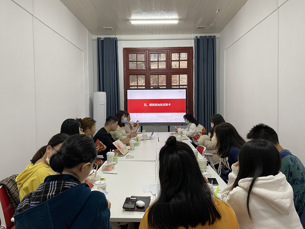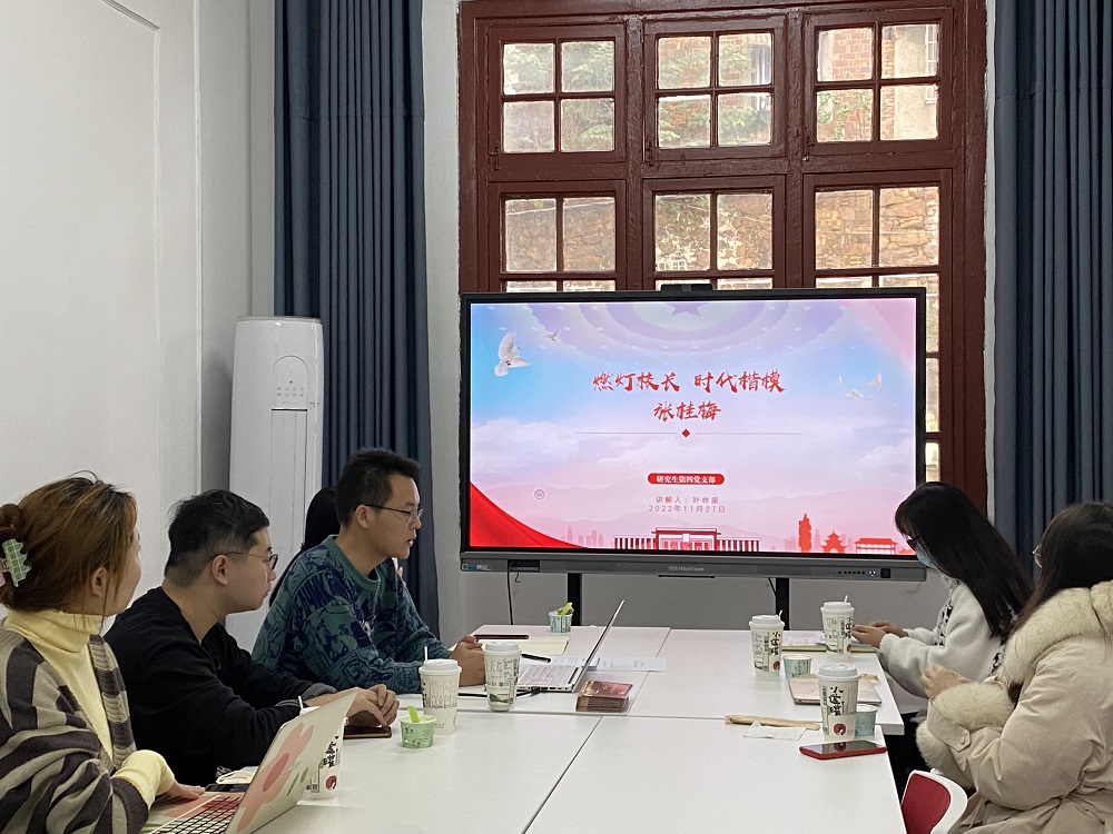 11月27日下午,公共管理学院硕士研究生第四党支部在学院214室开展“学思践悟二十大,砥砺奋进新征程”主题活动,活动由支部书记罗欢主持。