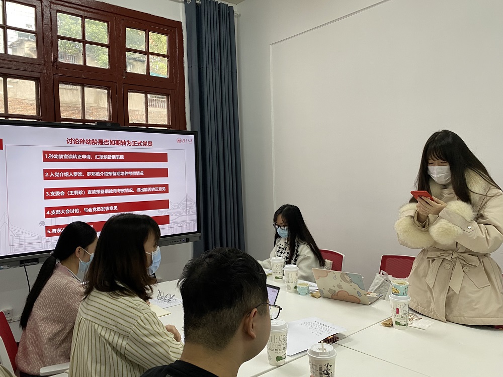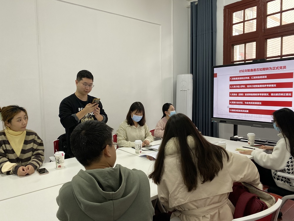 11月27日下午,公共管理学院硕士研究生第四党支部在学院214室召开全体党员大会,讨论预备党员转正事宜。会议由支部书记罗欢主持,支部在校党员参加会议。