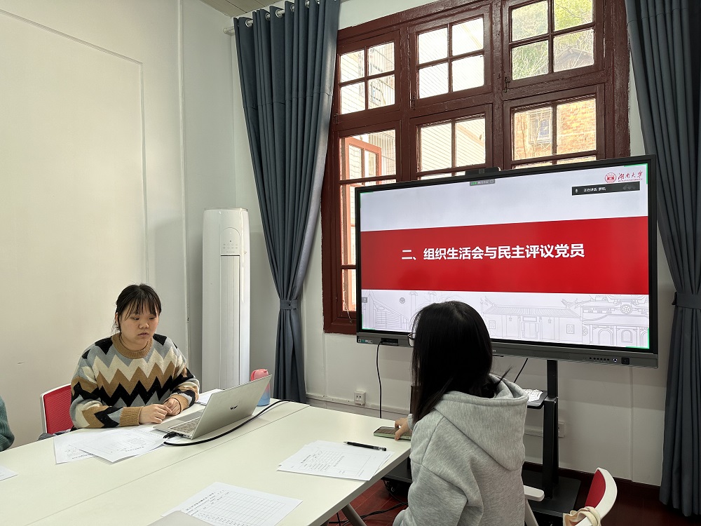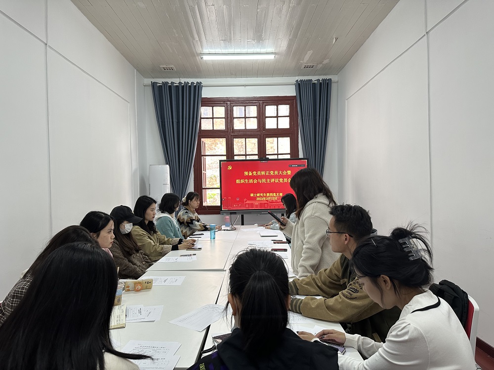 3月12日下午,公共管理学院硕士研究生第四党支部在学院214室召开组织生活会和民主评议党员大会。会议由党支部书记罗欢主持,全体在校党员参会。