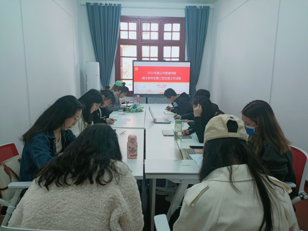 3月11日下午,公共管理学院硕士研究生第二党支部在院楼214会议室召开2022年度组织生活会暨民主评议党员大会。支部书记张佳乐主持会议,支部全体党员参加。