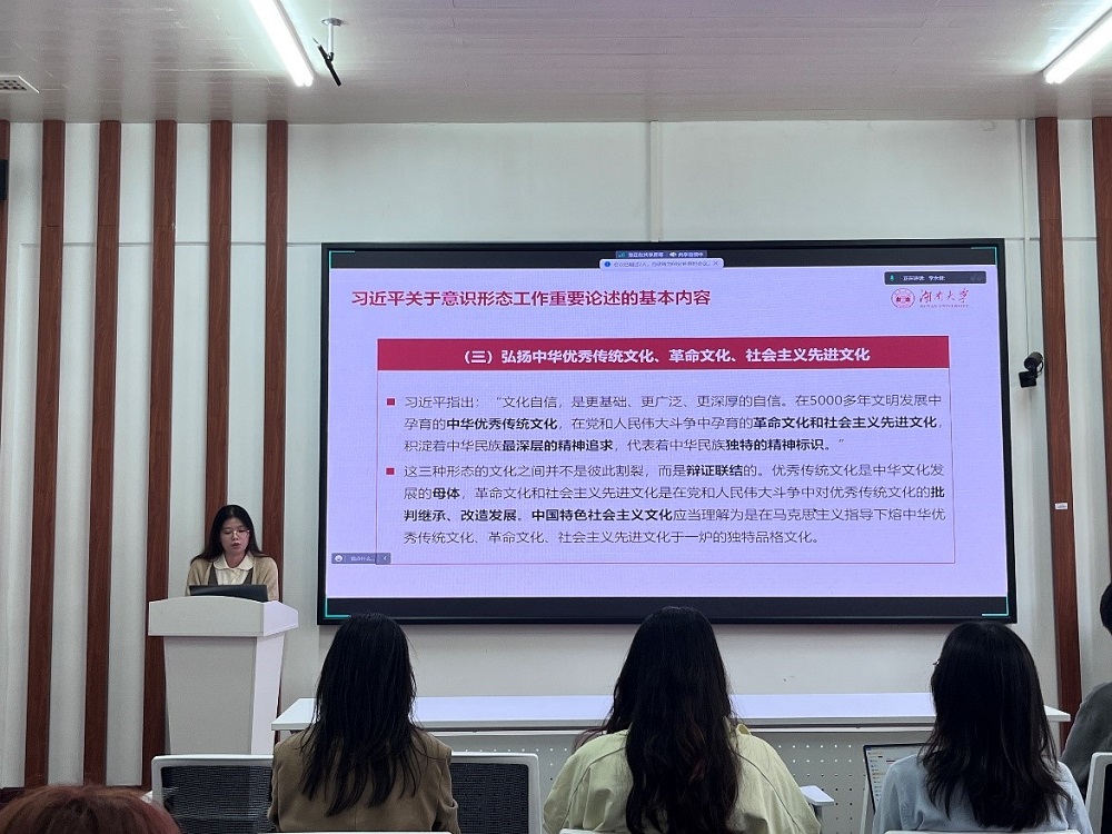 5月7日下午,李唯嘉领学 “习近平关于加强和创新思想政治教育工作的重要论述”,鼓励大家紧密结合自身实际,将思想政治教育贯穿日常学习、工作和生活中。段仁富带领大家深入探讨“中华优秀历史文化”,激发大家的民族自豪感和文化自信,为今后更好地传承和弘扬中华优秀历史文化提供了坚实的基础。