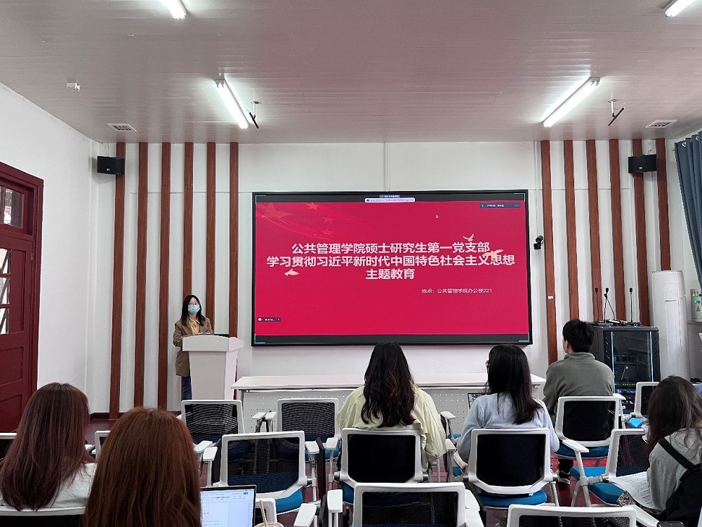 为深入学习贯彻习近平新时代中国特色社会主义思想,扎实推进习近平新时代中国特色社会主义思想主题教育,公共管理学院硕士研究生第一党支部在个人自学、分组研讨基础上,采取线上线下学习相结合、微党课宣讲形式,开展专题深入领读领学的读书班活动。