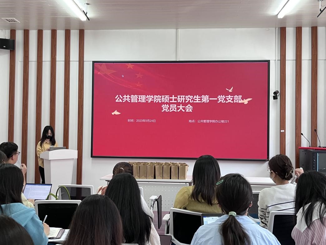 5月24日下午,公共管理学院硕士研究生第一党支部在院楼221召开党员大会,就接收黄诗瑶等四名发展对象为预备党员事项进行讨论和表决。在通报到会情况,确认有投票权的正式党员参会人数符合召开要求之后,党员大会正式开始。