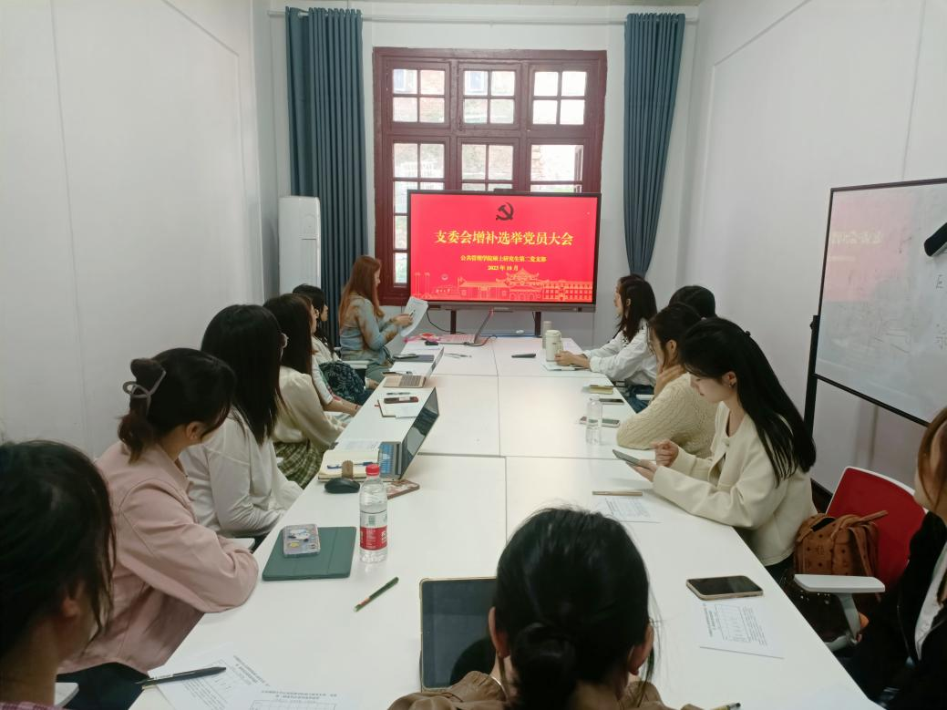 10月16日下午,公共管理学院硕士研究生第二党支部在院楼214室召开党支部委员会委员补选党员大会。党支部书记张佳乐主持会议,全体支部党员参加。