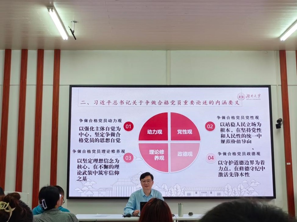 课堂伊始,杜老师从生活细节出发,由浅及深,逐步引出本次主讲主题——以实际行动做一名合格的共产党员。杜老师围绕习近平总书记对争做合格党员的重要论述,从其现实指向、内涵要义以及标准与要求三个方面进行详细讲解,深化同学们对合格党员的认识,提高同学们的自我培养意识。杜老师强调当代青年一定要有内生动力,坚定理想信念,奋发向上,以严格的标准要求自己,争做合格党员。