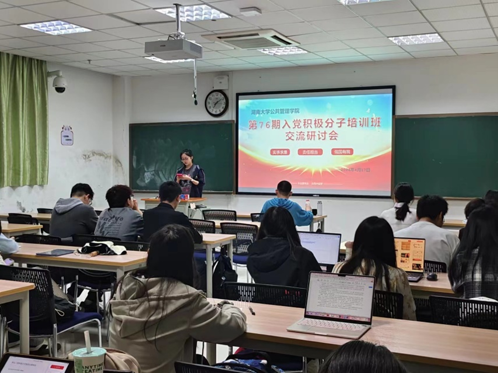 4月17日晚,第76期入党积极分子培训班交流研讨会在研究生楼C103教室举行,全体入党积极分子参与。