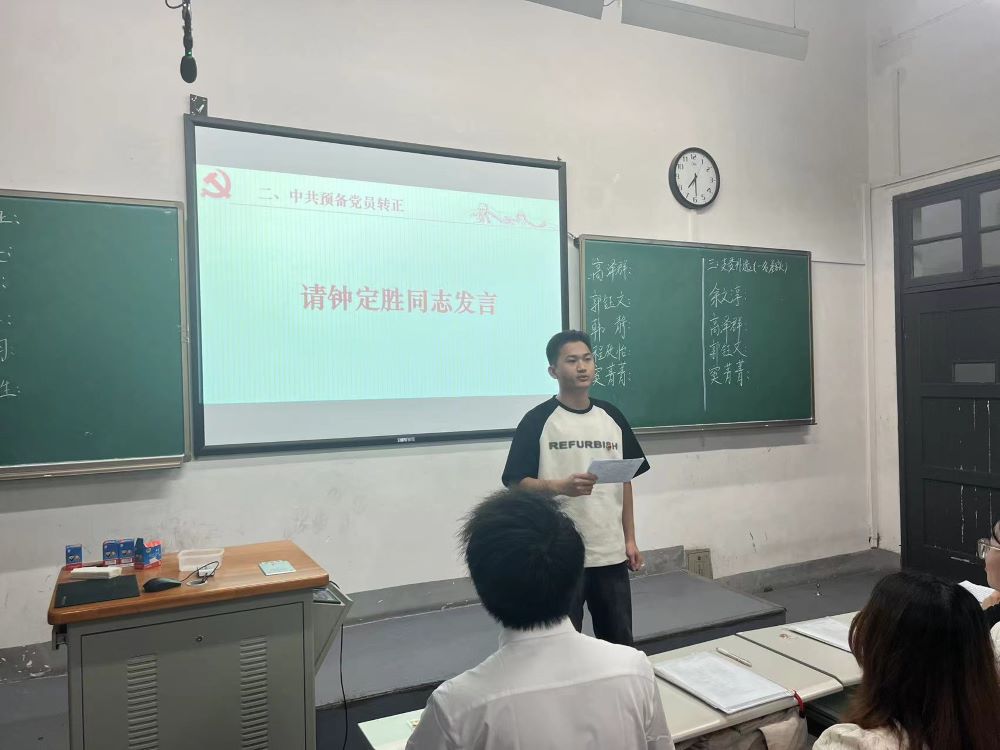 本科生第一党支部于东楼102室召开党员大会讨论表决2024年5月23日批次中共预备党员按期转正事宜。本科生第一党支部书记赵新宇主持会议,支部全体成员参加会议。本次会议主要讨论表决预备党员转正申请。