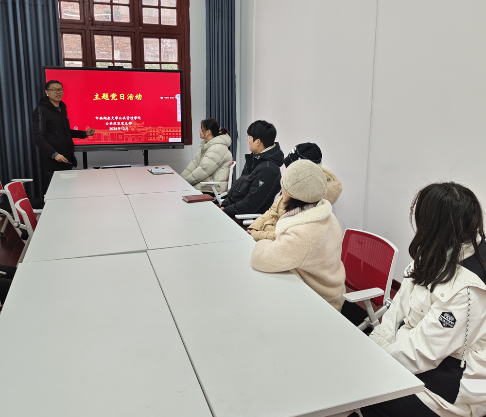 公共政策党支部在公共管理学院214会议室开展“党的光辉照我心”主题党日活动,会议由支部书记程聪慧主持。