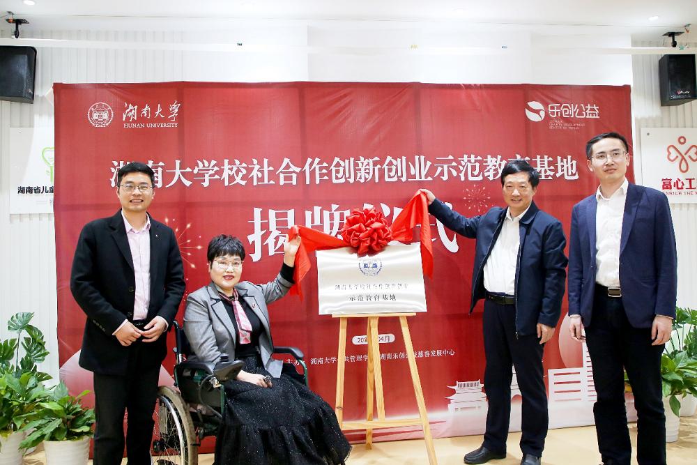 院长李连友、湖南大学教务处副处长肖靖、公共管理学院副院长谭海波、助理教授龚茴茴,乐创公益发起人李丽、中心副主任万强、中心项目主管裴玲、中心项目主管曾圣、中心综合部部长颜彦等人出席活动。揭牌仪式由乐创公益执行主任葛鹏主持。