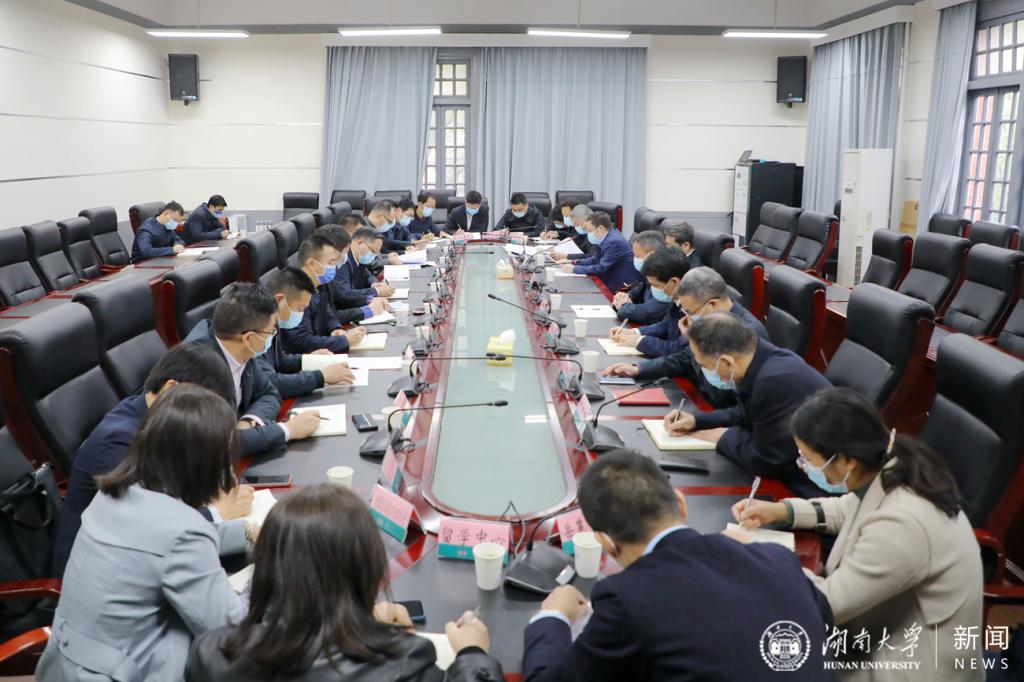 校办公室、宣传部、纪委办(监察处)、保卫部、学工部、研工部、校医院、后保部、国合处、留学中心、教务处、研究生院、人力资源处、招生与就业指导处、普继教管理办、财院校区管委会、离退休处、信息化办、图书馆、体育学院、岳麓书院等单位主要负责人参加会议。