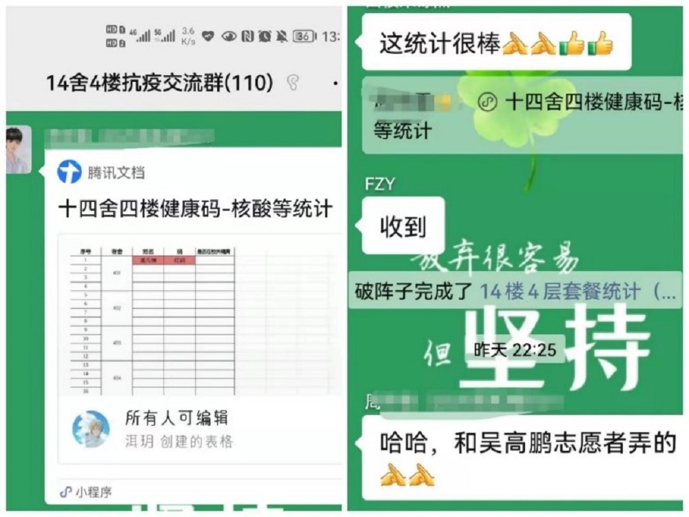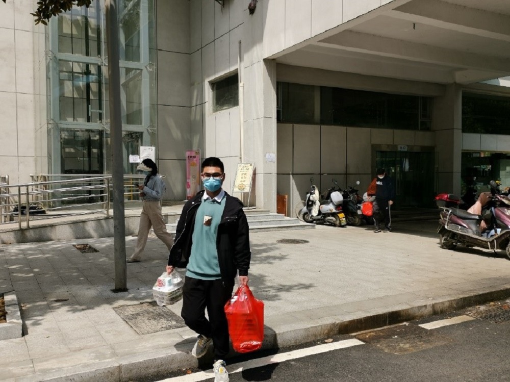 事迹5:公共管理学院2020级硕士研究生史钰宏同学,志愿负责所在楼层红黄码寝室,三餐带饭工作。