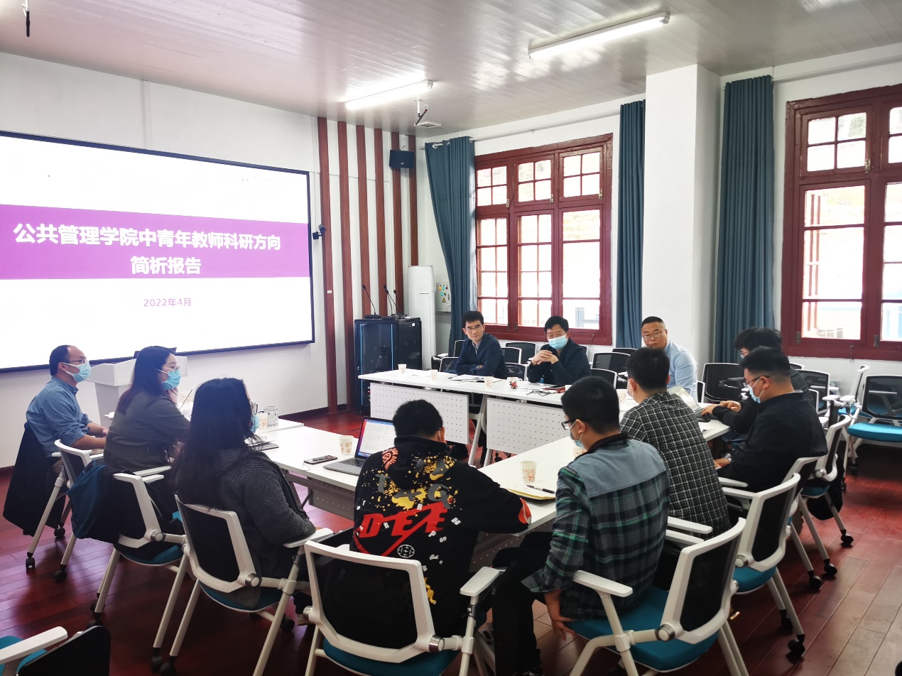 为响应学校学科建设年要求,进一步凝练学科研究方向,公共管理学院于4月22日至27日,以研究所为单位组织开展学科方向凝练研讨会。为做好学科凝练讨论的基础工作,保证研讨讨论有理有据,学院对副教授、助理教授的研究方向进行统计整理,梳理其近三年研究成果,厘清教师科研方向存在的现实问题,并与多位教师交流讨论形成原因。