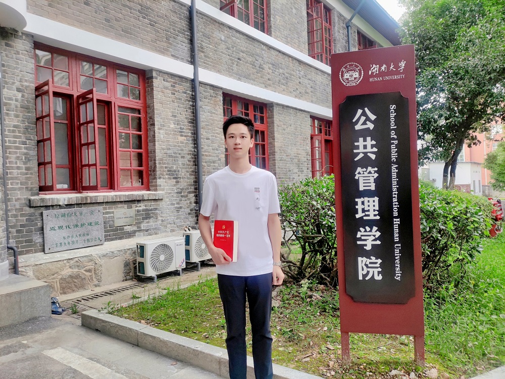 在专业学习方面,他扎实学好公共健康与社会保障相关基础理论和专业课程,力求将理论学识转化为洞察公共事务和研究民生保障问题的能力。学位课程成绩优秀,规格化成绩位列年级第9,获评2021年、2022年湖南大学硕士研究生一等学业奖学金,获评2021-2022学年度民生严克强高教奖学金优秀奖。