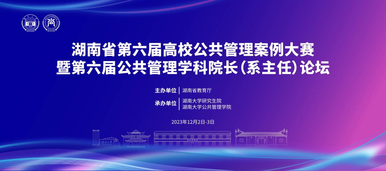 湖南省第六届高校公共管理案例大赛暨第六届公共管理学科院长(系主任)论坛,由省教育厅主办,湖南大学承办。