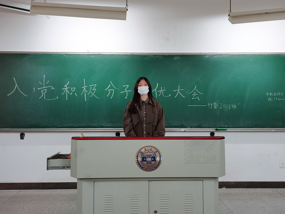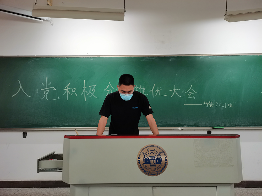 为进一步培养社会主义事业建设的接班人,激发广大团员的政治热情,充实党的新生力量,3月19日晚,公共管理学院行政管理2001班团支部于综合楼105教室开展团支部入党推优大会。会议由团支书高晓蕾同学主持,行管2001班全体同学参加,团委组织部干事高泽群同学全程监督。